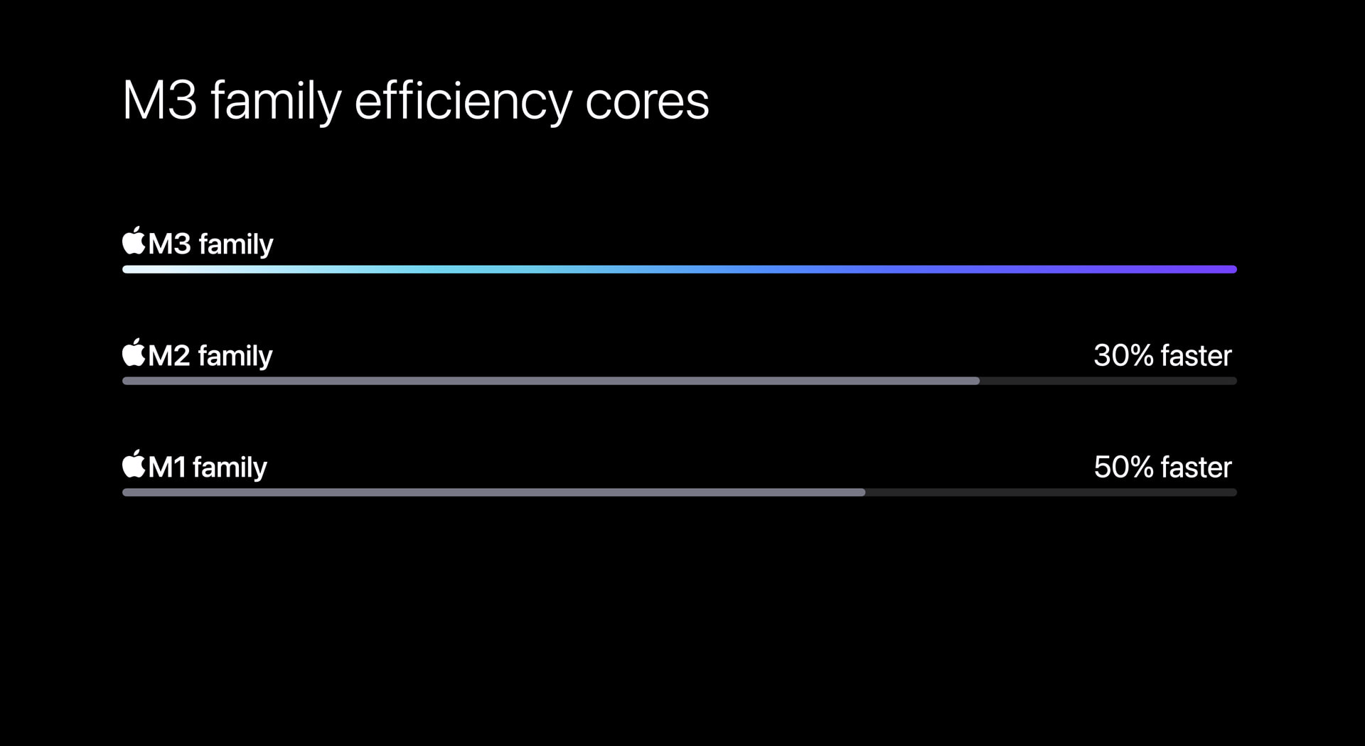 CPU의 경우 M2 대비 효율 코어는 30%, 성능 코어는 15% 더 빨라졌다. M1보다는 각각 50%, 30% 더 빨라졌다.