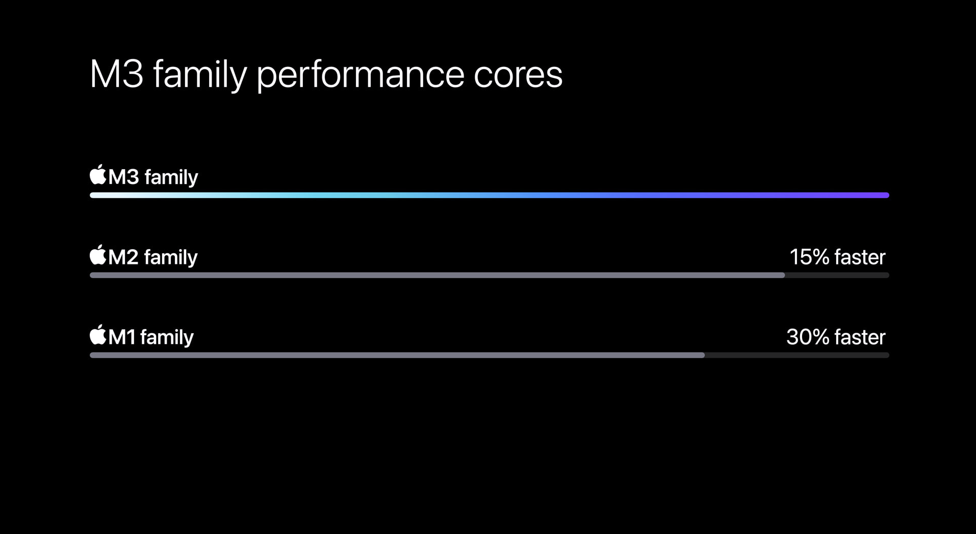 CPU의 경우 M2 대비 효율 코어는 30%, 성능 코어는 15% 더 빨라졌다. M1보다는 각각 50%, 30% 더 빨라졌다.